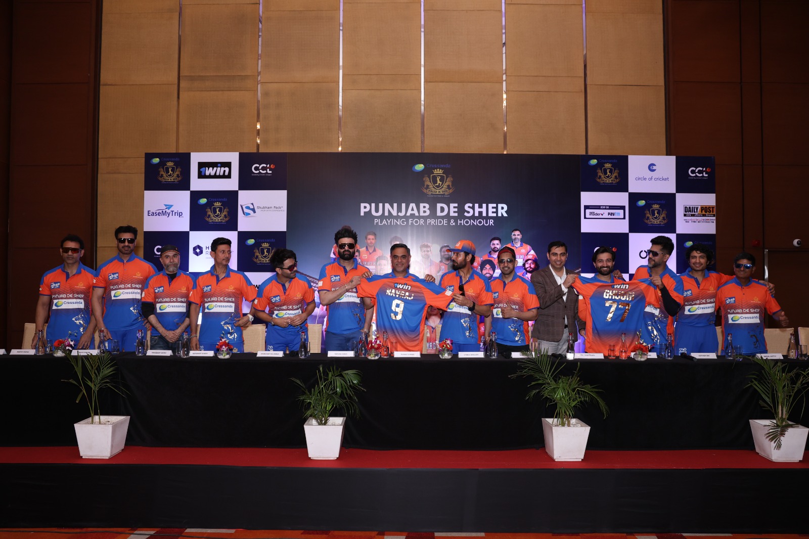 चंडीगढ़: यूएई स्थित शारजाह में 23 फरवरी से शुरु होने जा रहे सेलिब्रिटी क्रिकेट लीग (सीसीएल) के मद्देनजर पंजाब दे शेर ने अपनी टीम जर्सी लांच की। टीम के मालिक पुनीत सिंह और सह मालिक व प्लेयर नवराज हंस की अगुवाई में इस लांच अवसर पर टीम के अन्य खिलाड़ी भी शामिल हुये / इनमें बीनू ढिल्लों, अपारशक्ति खुराना, देव खरोड़ , दक्ष अजित सिंह, राहुल जेटली, मयूर मेहता, बब्बल राय, सुयश राय, मनमीत सिंह, गेवी चहल, निंजा, विरल पटेल और साहिल आनंद। शामिल थे।
