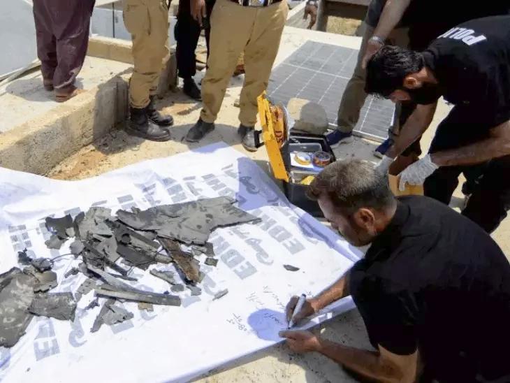 पाकिस्तान के कराची के पास क्राइम सीन यूनिट (CSU) ने उस मलबे की जांच की, जिसे ड्रोन का हिस्सा बताया जा रहा था। - Dainik Bhaskar