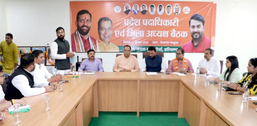 पंचकूला। भाजपा के प्रदेश अध्यक्ष पंडित मोहन लाल बड़ौली ने कहा कि युवा मोर्चा के कार्यकर्ता भाजपा के संगठन की ताकत है। उन्होंने कहा कि हमें संगठन को और अधिक मजबूत करना है। श्री बड़ौली ने कहा कि पीएम मोदी के जन्म दिवस के उपलक्ष्य में चलने वाले सेवा पखवाड़ा में युवा मोर्चा का बहुत बड़ा योगदान रहने वाला है। ये बातें श्री बड़ौली ने मंगलवार को पंचकूला स्थित भाजपा प्रदेश कार्यालय पंचकमल में युवा मोर्चा की बैठक को संबोधित करते हुए कही। इस मौके पर संगठन मंत्री फणीन्द्रनाथ शर्मा, प्रदेश महामंत्री सुरेंद्र पूनिया, युवा मोर्चा के राष्ट्रीय उपाध्यक्ष अभिनव प्रकाश, भाजयुमो प्रदेश अध्यक्ष योगेंद्र शर्मा मौजूद रहे। भाजपा प्रदेश अध्यक्ष पंडित मोहन लाल बड़ौली के नेतृत्व और युवा मोर्चा के प्रदेश अध्यक्ष योगेंद्र शर्मा की अध्यक्षता में हुई बैठक में सेवा पखवाड़ा के तहत होने वाले कार्यक्रमों की योजना-रचना पर चर्चा हुई। इस दौरान प्रदेश अध्यक्ष बड़ौली ने युवा मोर्चा के सभी पदाधिकारियों को सेवा पखवाड़ा के तहत होने वाले कार्यक्रमों की रूपरेखा बताई और जरूरी दिशा निर्देश भी दिए। श्री बड़ौली ने कहा कि हरियाणा की नायब सरकार बेहतरीन कार्य कर रही है। हर वर्ग के लोगों को मोदी और नायब सरकार की जनकल्याणकारी योजनाओं का लाभ मिल रहा है। उन्होंने कहा कि भाजपा सरकार की उपलब्धियों से कांग्रेस हताश और निराश है, इसलिए कांग्रेस के नेता बेतूकी बयानबाजी कर रहे हैं। बैठक में उन्होंने मोदी सरकार और नायब सरकार की उपलब्धियों और योजनाओं को जनता तक पहुंचाने और संगठनात्मक मजबूती पर जोर दिया। बैठक के बाद श्री बड़ौली ने कहा कि छह मोर्चों और सभी विभागों व प्रकोष्ठों की बैठकें हो चुकी हैं। आज की बैठक में युवा मोर्चा के सभी जिला अध्यक्ष, जिला प्रभारी एवं प्रदेश पदाधिकारी मौजूद रहे। उन्होंने कहा कि अब जिलावार मोर्चों और विभाग व प्रकोष्ठों की बैठकें 15 सितंबर तक संपन्न हो जाएगी। सेवा पखवाड़ा के बारे में बताते हुए उन्होंने कहा कि युवा मोर्चा प्रदेश के सभी संगठनात्मक 27 जिलों में रक्तदान शिविरों का आयोजन करेगा। जिला स्तर पर स्वास्थ्य कैंप लगाए जाएंगे और प्रधानमंत्री नरेंद्र मोदी के व्यक्ति पर प्रदर्शनी भी लगाई जाएंगी।श्री बड़ौली ने कहा कि भाजपा के कार्यकर्ता जिला व मंडल स्तर पर स्वच्छता अभियान चलाएंगे। वोकल फॉर लोकल कार्यक्रमों के जरिए लोगों को स्वदेशी के प्रति जागरूक करेंगे। बीजेपी प्रदेश अध्यक्ष ने कहा कि सेवा पखवाडा के तहत प्रबुद्धजन व बुद्धिजीवी सम्मेलन होंगे साथ ही एक पेड़ मां के नाम अभियान के तहत कार्यकर्ता बूथ स्तर पर पौधारोपण करेंगे। सेवा पखवाड़ा के तहत ही भाजपा के कार्यकर्ता सरकार की जनकल्याणक