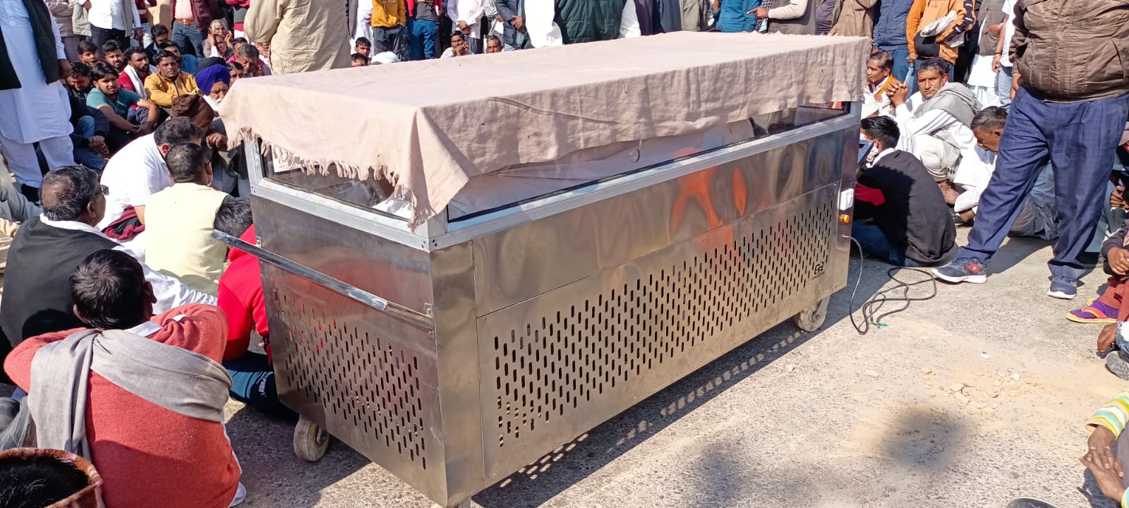 Tags: Angered by the death of the shopkeeper in Bhunathe family members jammed the dead body by keeping it on the road.