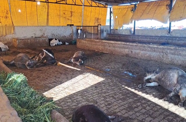 करनाल की बंसीवाला गौ सेवा धाम में 45 गायों की मौत के बाद हडकंप मच गया। बताया जा रहा है कि सभी गायों ने जहरीला चारा खा लिया। घटना की जानकारी मिलते ही पुलिस मौके पर पहुंची और डॉक्टरों की टीम को मौके पर बुलाया गया। गौशाला के प्रधान राकेश ने बताया कि हर रोज की तरह वह घास मंडी से गायों के लिए चारा मंगवाते थे। मंडी में महेन्द्र नाम का आढ़ती है। उसी से गौशाला में गायों के लिए चारा आता है। कल शाम को वहीं से चारा लाया गया था और रात को सेवादारों ने उसी चारे को इन 45 गायों को डाला था। सुबह जब देखा तो सभी गायों की मौत हो चुकी थी।