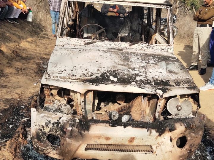 भिवानी जिले के लोहारू में आज गुरुवार को एक सनसनीखेज घटना सामने आयी है। अपको बता दें, गांव बारवास में एक जली हुई बोलेरो गाड़ी मिली है। साथ ही गाड़ी में दो युवकों के कंकाल भी मिले है। गाड़ी के साथ युवक भी बुरी तरह से जल गए। इनकी केवल हड्डियां ही बची हैं। पुलिस और FSL की टीम मौके पर पहुंच कर जांच शुरू कर दी है। इस घटना के बाद पूरे गांव में सनसनी फैल गई। ग्रामीणों ने सुबह गाड़ी को जली हालत में देखा तो तुरंत पुलिस को सूचना दी। पुलिस की टीम इसका पता लगा रही है कि गाड़ी में आग लगी है या किसी ने लगाई है। युवक हादसे में जले हैं या कोई साजिश हुई है।